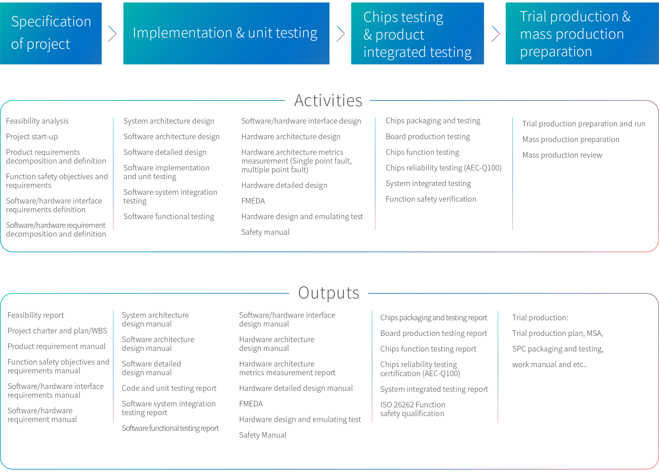 The chips yielded are subjected to multi-temperature mass production tests and long-term aging tests, which is certified with AEC-Q100 standard.